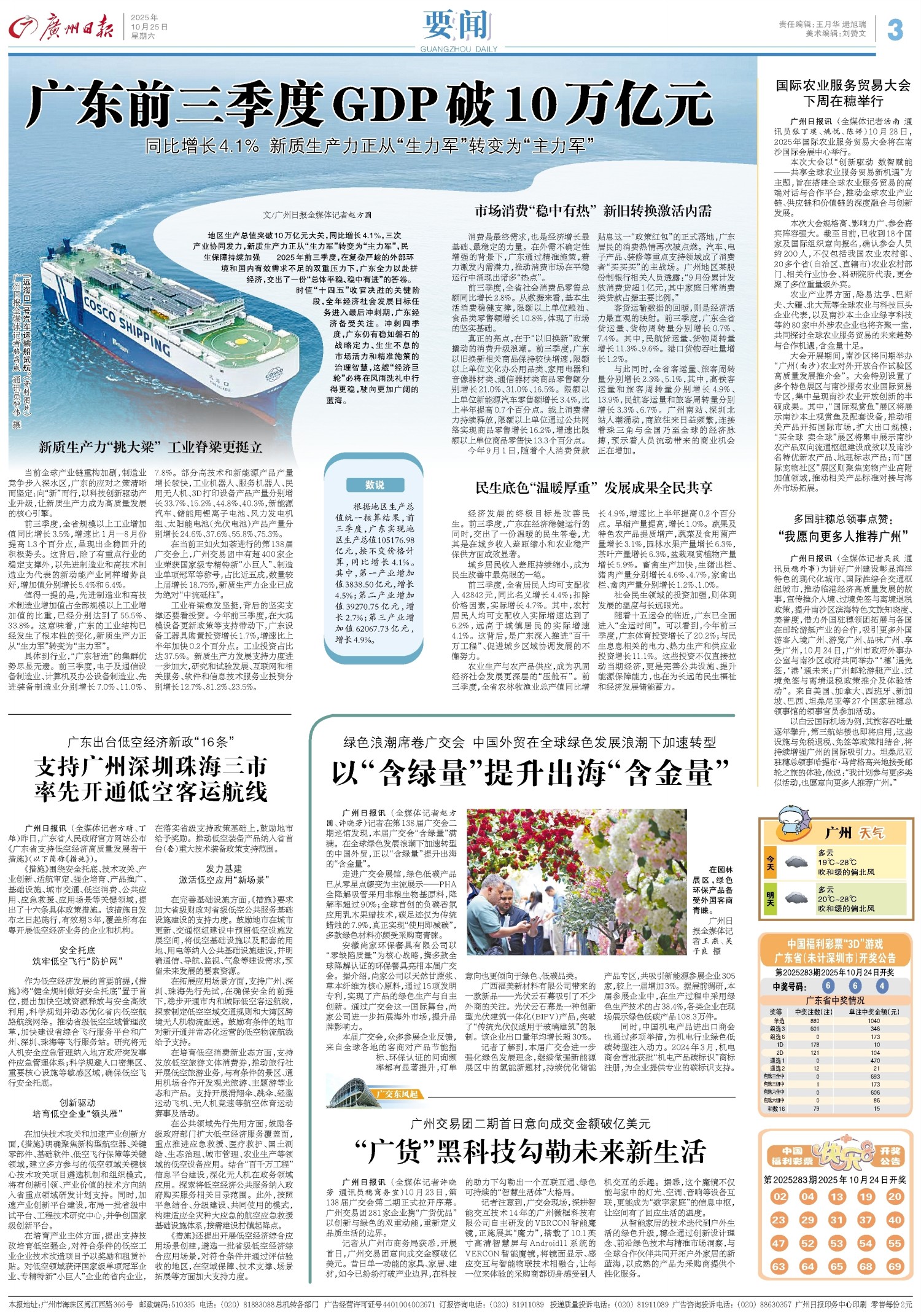 广东前三季度GDP破10万亿元