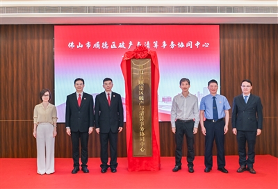 佛山市顺德区破产与清算事务协同中心在佛山新城揭牌启用。