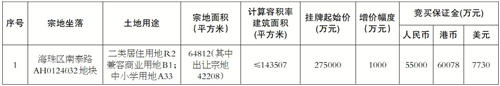 二、地块出让条件、用地规划条件等出让文件详见www.gzggzy.cn网。本次出让活动承办单位:广州交易集团有限公司(广州公共资源交易中心)。