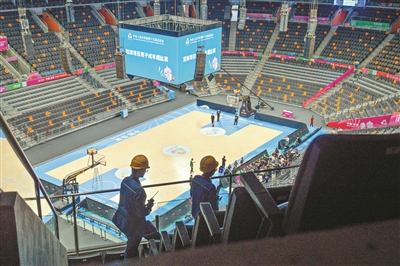 赛前,东莞供电局工作人员走进东莞篮球中心开展用电检查,保障场馆用电正常。(吴志彬摄)