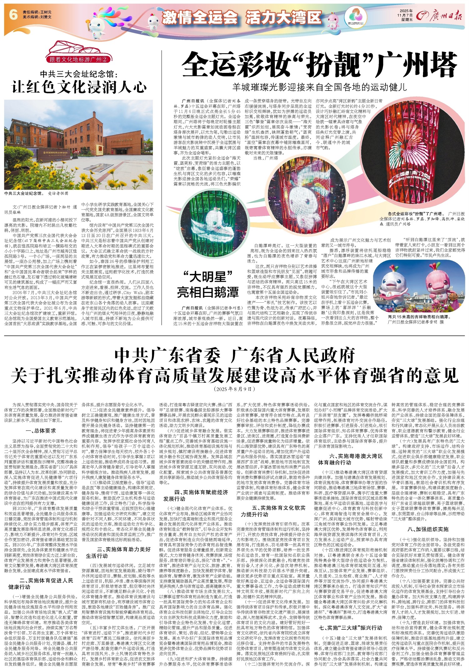 中共广东省委 广东省人民政府关于扎实推动体育高质量发展建设高水平体育强省的意见