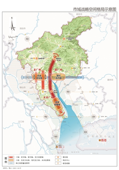 促进广州千年城脉、文脉、商脉传承发展;推动城市老中轴、新中轴、活力创新轴融合互动;实现老城区“历史文化核”、东部中心“现代活力核”、南沙“未来发展核”联动发展。