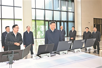 11月7日至8日,中共中央总书记、国家主席、中央军委主席习近平在广东考察。这是8日上午,习近平在广州察看广东科技创新和产业创新融合发展成果展示。新华社发