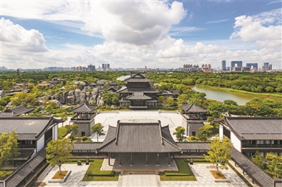 该馆以“十里红云一湾水,八桥画舫十六亭”为设计理念,用传统建筑和园林空间的巧妙组合再现岭南水乡园林的佳境,包含公共文化中心、翰墨园、曲艺园、广府园、广绣园等多组主题园林建筑,由它们共同形成的大型园林景观,是富有岭南生态特色、文化底蕴的城市客厅。