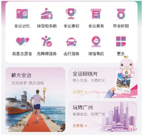 “全运广州”小程序充分彰显了参与性与互动性。特别打造的“薪火全运”功能模块,将线下火炬传递搬到线上。“我们还设计了趣味小互动,大家可邀请亲友一同加入,组建专属传递小团队,完成传递后将自动生成电子传递勋章。”广州市政务服务和数据管理局办公室主任、十五运会和残特奥会广州赛区执委会数字技术部副部长张桂东说。