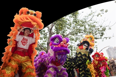 广州文化底蕴深厚,图为永庆坊,赵家狮在庙会上舞动。广州日报全媒体记者陈忧子摄