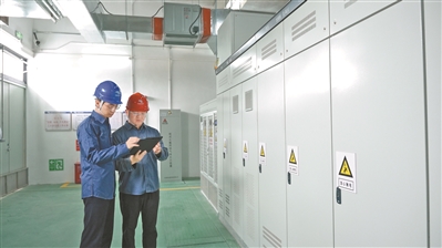 顺德供电局杏坛供电所工作人员检查综合保税区电房运行情况。(郑景蔚 摄)