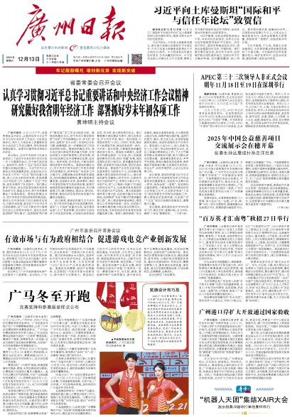 广州日报讯 (全媒体记者贾政、方晴 通讯员穗府信)12月12日下午,广州市市长孙志洋主持召开市政府常务会议,贯彻落实习近平总书记视察广东和出席第十五届全国运动会开幕式重要讲话重要指示精神,研究部署游戏电竞产业高质量发展等工作。