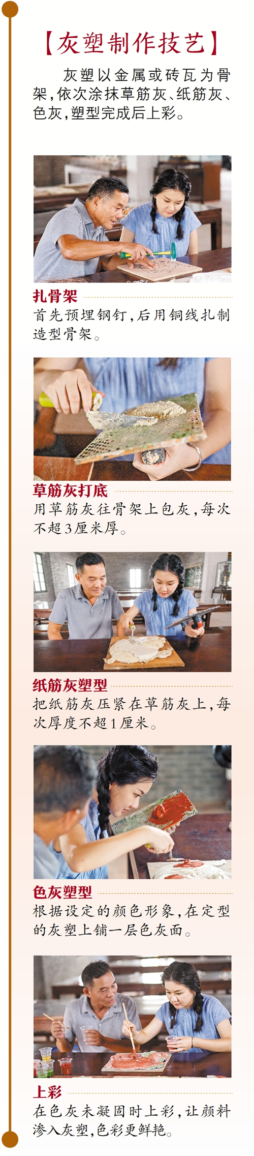 对灰塑如数家珍的邵师傅希望能把灰塑推广到全世界,“如果有机会,我还想把灰塑带到西伯利亚,看它能否熬得住严寒。”