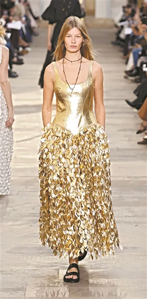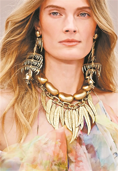 时尚博主任任告诉记者,此次“流苏”也超越波希米亚风情的点缀,成为塑造节奏、质感与情绪的核心媒介,被大规模、高密度地运用。从金属感枝叶流苏到球形夸张流苏,其摇曳形态打破了着装的静态规则,随模特步伐漾出迷人韵律。同时,“马蹄”元素也被升华为核心设计符码。明星彩妆师小斌表示,这一趣味造型为彩妆提供灵感,如Isabel Marant的简约吊坠与耳饰,精准诠释优雅与力量。小斌补充道:“眼妆或唇妆可借鉴镂空精髓,将胭脂色彩与碎钻结合,点缀高级质感。”