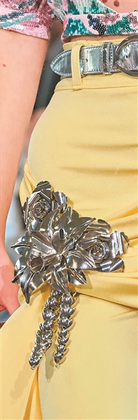 “近几季大热的Miu Miu,在新季依然深谙消费者心理,紧抓20世纪80年代工业的美学为流量密码。”广东十佳设计师诗茹表示,经典的暖黄色、橘色、粉色与绿色等各种拼接撞色与几何图腾,被设计师巧妙重构,均化为模特身上的不同“色块”(包括外套、丝巾、长裙、洋装等),柔和舒适却不失时髦活力。“Celine的碎花亮色洋装,Tom Ford的淡粉红西装套装,也足以让人心心念念。”在诗茹看来,复古时髦的碎花亮色能把现代洋装变得更有质感,而粉系颜色能淡化西装的视觉强势感,展现色彩平衡之美。