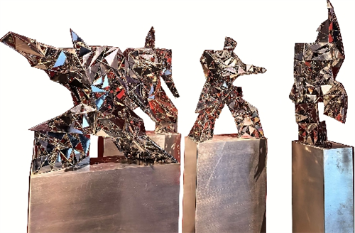 本次展览深刻诠释了湾区开放包容的气质与体育拼搏精神的交融,《极速》《跨越》等作品以流线造型呼应湾区发展速度,《李小龙》《中华太极·铁三角》等作品通过传统武术展现文化传承的生命力。户外空间中,《飞车》《独奏》等作品以趣味场景打破艺术与生活的边界,邀请观众在行走间感受“雕塑+体育”的共生魅力。