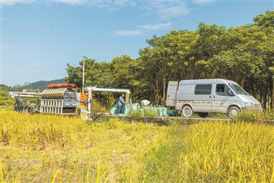 从化区太平镇银林村迎来稻田丰收。