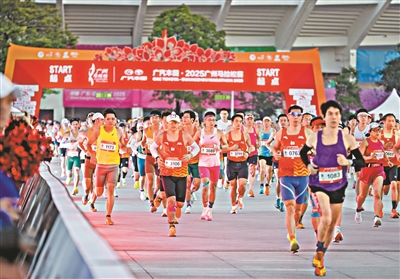 12月21日7时,2025广州马拉松赛在天河体育中心火热起跑。广州日报全媒体记者庄小龙 摄