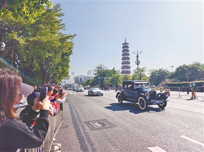 当百年经典古董车与智能网联汽车并排驶过广州塔,这座城市的街道成为一部流动的汽车进化史。
