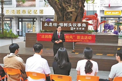 普法小摊,“法”味浓浓。在开展法治宣传活动中,广州注重通过接地气、精准化的普法形式贴近群众,面对面解决群众遇到的法律问题,让法治知识“看得见、摸得着、学得会”。