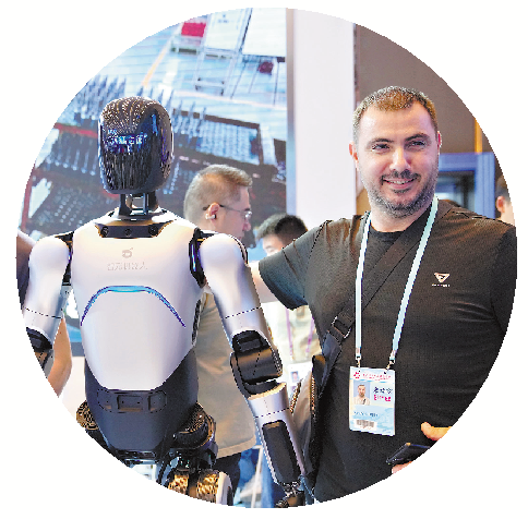 第138届广交会现场,采购商与机器人合影。广州日报全媒体记者王燕、吴子良、骆昌威 摄