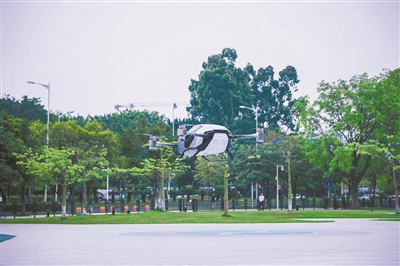 一架低空飞行器在广州大学城起飞。