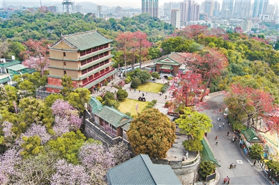 位于越秀山上的镇海楼,曾名望海楼,因楼高五层,俗称“五层楼”。(资料图片)广州日报全媒体记者杨耀烨 摄