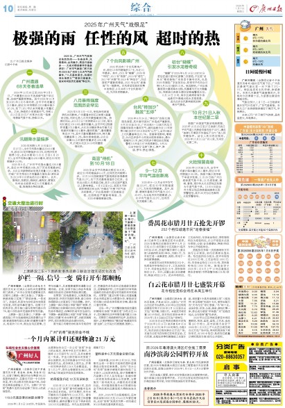 2025年,广州天气气候舞台依然热闹——冬春连旱、汛期暴雨、台风集中、高温日数偏多……大家对哪些事件印象最深呢?广州市气象部门昨日发布2025年广州市十大天气气候事件,“八月暴雨袭击,持续时间长强度大”“高温日数偏多,结束时间创历史最晚”等在列。