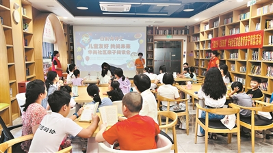 工作日的下午,华尚社区党群服务中心人气十足。孩子们放学后喜欢来到这里,在“红领巾学堂”与志愿者老师互动,在社区科普馆体验VR科技、AI象棋。在不远处的华夏银行(社区儿童图书馆),“楼下办业务、楼上阅读”成为社区一道独特的风景,银行馆藏图书1万余册,是社区亲子活动主阵地。“在工作日,图书馆随银行开放时间开放,周六从早上9时开放到下午4时。我们每年举办活动40余场,包括公益亲子阅读活动,以及母乳喂养、急救、科学育儿等讲座。”社区工作人员郑女士说。