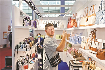广交会上,客商在精心选购箱包产品。(资料图片)广州日报全媒体记者陈忧子、李波摄