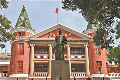 矗立在中山大学广州校区北校园的青年孙中山求学雕像(梁浩然摄)
