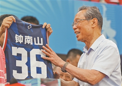 钟南山院士热爱体育运动,获赠定制球衣。图/广州日报全媒体记者王维宣