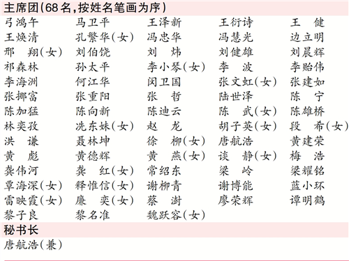 广州市第十六届人民代表大会第六次会议主席团和秘书长名单