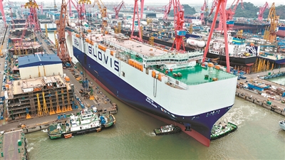 国内最大汽车运输船出坞。广州日报全媒体记者何钻莹 通讯员彭永桂、钟伟摄