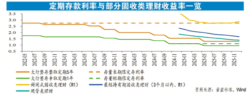 尽管债市面临扰动,但银行理财仍具有一定的配置价值。温彬分析,2026年,银行理财收益率或呈现“震荡偏弱”格局。但由于目前现管类理财平均收益率可达1.4%,固收类可达2.2%,均高于当前国有行3年期定存挂牌利率1.25%,银行理财相较于定存的比价优势持续存在。债基方面,有金融业内人士坦言,在低利率时代,预计债基的收益将分化,投资者要降低对债基的收益预期。