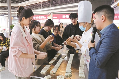 面点师傅传授包点制作技法。