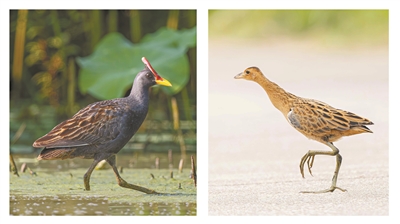 如果说黑鹳是喜爱开阔水域的“贵族”,那么董鸡则更像是一位隐居在芦苇荡与稻田间的“乡绅”。这种被列为国家“三有”保护动物(即有重要生态、科学、社会价值)的涉禽,与人们的农耕生活有着千丝万缕的联系。它偏爱灌水的稻田、湖边草丛和多水草的沟渠,往往在晨昏时分活动。