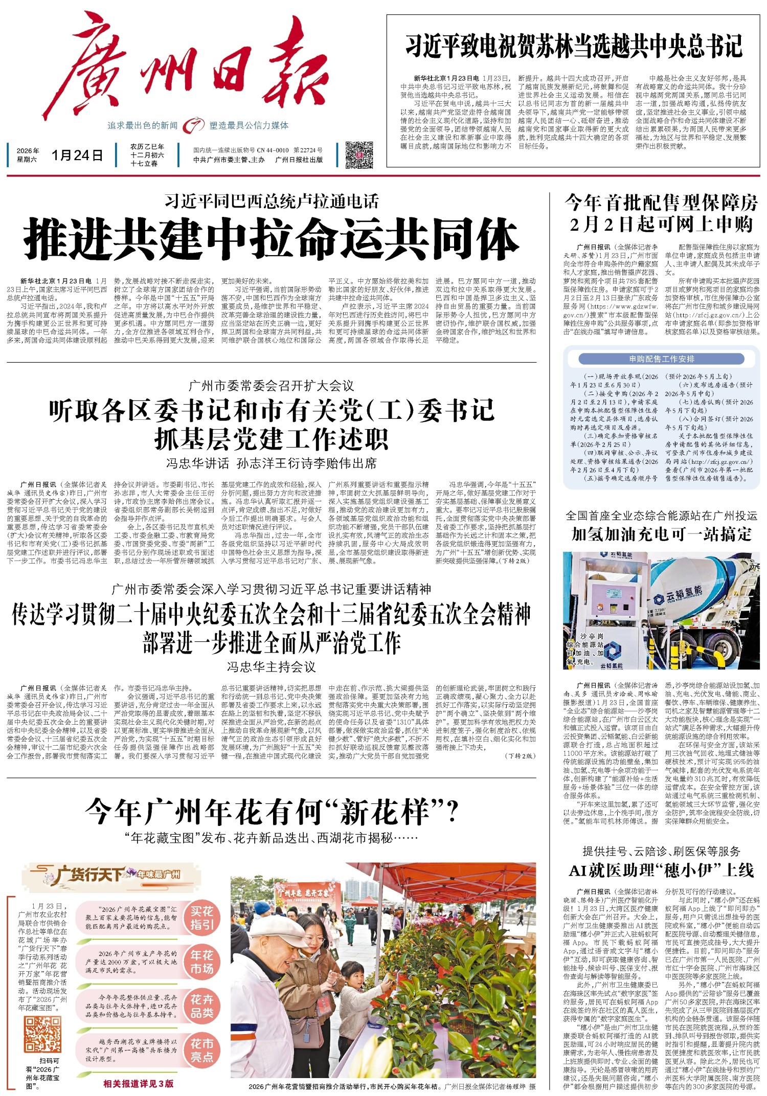 广州日报 头版 A1 2026-01-241 2026年01月24日 星期六
