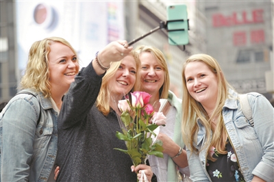 外国游客游览越秀西湖花市。