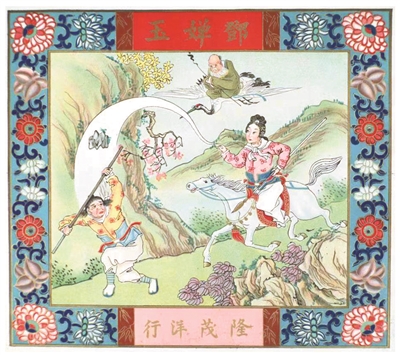 广州海事博物馆中,收藏着一张《封神演义》中的著名人物邓婵玉给洋行“带货”的广告纸。邓婵玉手持长枪,骑着白马,掷出具有法力的五光石,具有强烈的中国神话、武侠色彩和吉祥寓意。为后来风靡民国时期的“月份牌”广告画作了铺垫,引领了数十年商业视觉潮流。