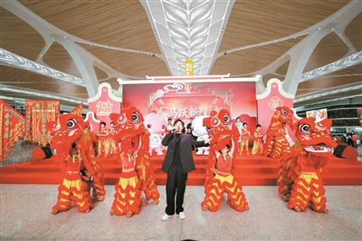 文明实践“融”入归途 航站楼里“绽”放年味