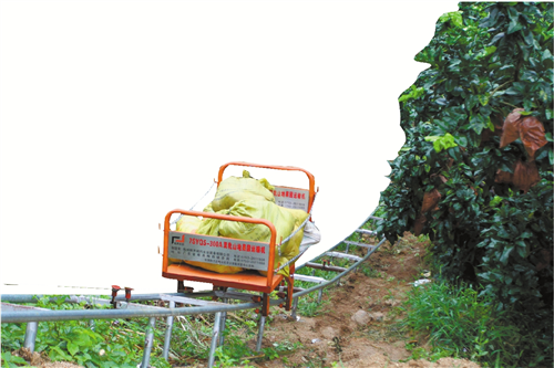 山地轨道运输车“一键”上下山,高效运果。 林翔 摄