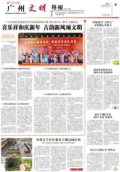 春潮涌动暖羊城,文明实践贺新春。新春佳节,全市各级新时代文明实践阵地厚植精神文明建设沃土,深耕文化惠民理念,精心打造了一系列有温度、有特色的文明实践活动,将传统年味与时代新风深度相融,让市民游客在温馨和谐的喜庆氛围中,加深对春节内涵的理解与认同,推动传统民俗焕发时代风采,让文明理念浸润人心、融入日常。