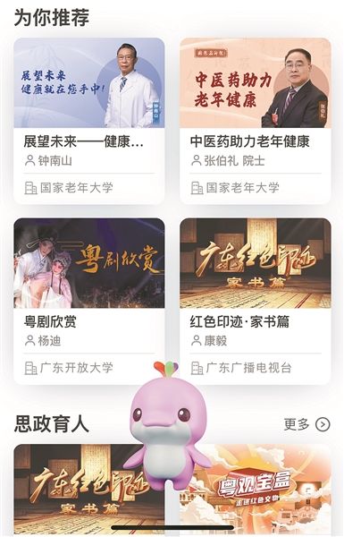 针对老年人这一关键服务群体,省教育厅依托广东全民终身学习平台,打造“乐龄学习”网络学习资源,开设智能生活、防诈骗等特色课程,搭建电脑、手机、电视大屏三条无障碍学习通道,整合全国优质资源,精准满足老年人实用技能、文化健康、代际沟通等多元学习需求,让老年群体共享终身学习成果。