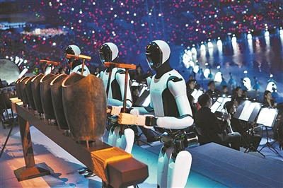 十五运会开幕式上,根据两千多年前的青铜句鑃制作的句鑃被机器人敲响。
