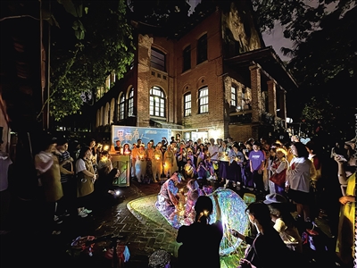 首场活动“疗育之夜”,艺术家、家长与特殊孩子在百年红楼高礼士屋前共创。