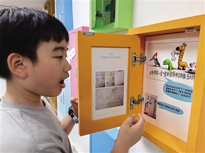 周鲒在向来宾介绍特殊儿童的作品。