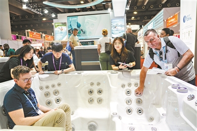 采购商坐进一款浴缸产品中亲身感受。
