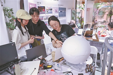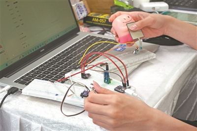东南大学产品设计专业大四学生郑心源是“拜托了冰箱”的概念提出者,之前对技术并不了解。她和大学室友一起来参赛,希望把自己的创意从0到1做出来。产品用于管理冰箱食材:通过摄像头扫描食品种类,语音输入购买信息,生成条形码贴在食物上,随时扫码查看;显示屏提示优先处理的食材。团队中,她和室友负责产品设计、营销等工作,其他四名成员负责嵌入式开发设计。这款产品引起了不少专业评委的兴趣,他们提出了很多细节上的问题,比如产品是充电还是插电,有没有测算过能够识别多少种食物等。