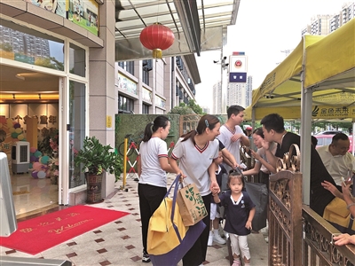 “妈妈,我要妈妈……”早上8时许,这样的哭喊声在金色未来凯晟景园幼儿园门前响起,各种离别戏码不断上演。尽管幼儿园在前一天已组织召开新生见面会,孩子们都提前熟悉了幼儿园的环境,但当真正到了要与父母分开时,萌娃怎能马上接受这个“残忍”的现实呢?
