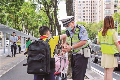 广州日报讯 (全媒体记者刘艺明 通讯员张亿、魏巍摄影报道)昨天是开学首日,佛山公安全面开启“护学模式”,出动警辅力量3106人次,多措并举护航全市师生安全顺利返校。当天,佛山社会治安平稳,校园周边秩序良好,全市交通平稳顺畅。其中,禅城公安组织全警、校园保安和近千名“警家校”护畅队员,分赴全区中心区域的小学和幼儿园启动“护学模式”,推出“潮汐车道”“送学车道”和“护学走廊”等举措。