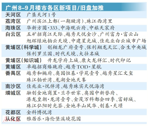 中地行的统计显示,从9月份开始,广州预计共有40个项目有动作(包含商业公寓),其中15个项目开盘,15个项目旧盘加推,9项目开放营销中心,1项目开放城市展厅。