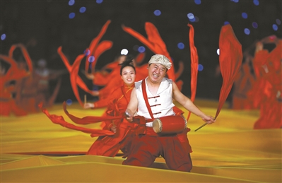 新中国成立后,人们热情洋溢地投入到新中国的建设中。开幕式上,一首由陕西籍演员闫妮、张嘉益演绎的《社会主义好》,将人们带回到那段火热岁月。歌舞《时代号子》,则展现了改革开放以来中国人积极向上的时代风貌。