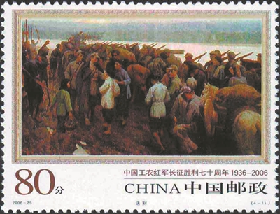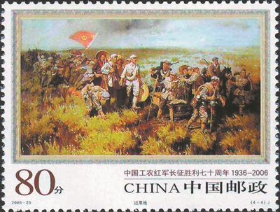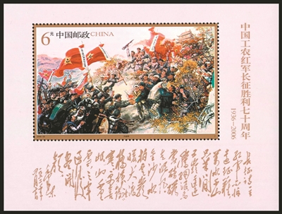 2006年10月22日,为纪念中国工农红军长征胜利70周年和弘扬长征精神,中国邮政发行2006-25《中国工农红军长征胜利七十周年》纪念邮票,全套四枚,小型张一枚。